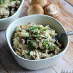 Dans une poêle, faire revenir ensemble les aillets et les champignons dans un filet d'huile d'olive, jusqu'à ce que toute leur eau de végétation se soit évaporée.