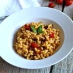 ail, basilic, bouillon de volaille, chorizo, oignon, parmesan, tomates cerises, vin blanc sec