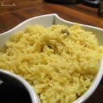 Ajouter le riz et les épices sauf le curcuma et laisser cuire quelques instants jusqu'à ce que le riz devienne translucide.