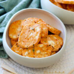 On détaille des rondelles pas trop épaisses, que l'on dépose sur une plaque en aluminium perforée recouverte d'une toile de cuisson.