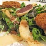 Salade aux poires, magret fumé & chèvre pané aux spéculoos
