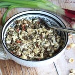 chorizo, ciboulette, feta, huile de noisettes, noisettes, oignon nouveau