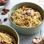 Y faire revenir l’ail haché avec les amandes pendant quelques minutes en mélangeant constamment. Le tout doit être doré.