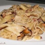 Baisser le feu et laisser revenir 2 minutes en mélangeant puis verser les tagliatelles de crêpes dans la sauteuse.