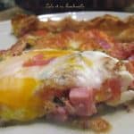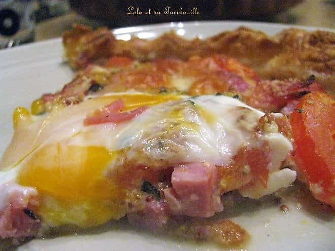 Sortir la tarte du four et casser deux oeufs dessus (1 de chaque côté de la tarte) puis ré enfourner pour 10 minutes le temps que les blancs soient prient.