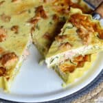 Répartir les cubes de saumon puis recouvrir de l'appareil à base d'oeufs, Boursin et crème liquide.