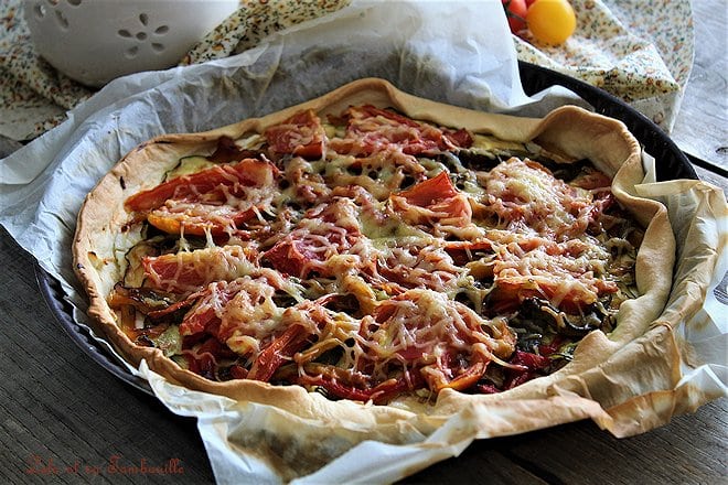 Disposer les moitié de poivrons, peau vert le haut sur la plaque de cuisson à la place des courgettes et les enfourner pour environ 15 minutes sous le grill du four.