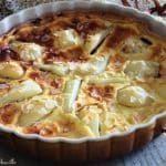 amandes effilées, chocolat noir, crème fraîche, pâte brisée, poires