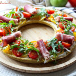 Rouler les tranches de jambon de pays et les répartir sur la tarte.