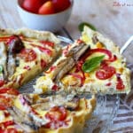 Terminer en disposant sur le dessus et joliment, les moitiés de tomates cerises faces coupées vers le haut en les enfonçant légèrement, puis les filets de sardines.