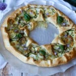 Déposer quelques feuilles de basilic et quelques pétales de fleur de ciboulette.