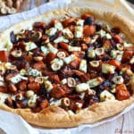 Disposer dessus, les cubes de patate douce rôtie, puis l'oignon émincé.