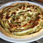 Disposer joliment les lanières de courgettes, peau en haut sur le fond de pâte.