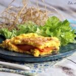 Recouvrir avec un quart d'omelette et servir tiède ou froid.