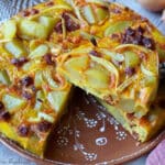 Pendant ce temps, éplucher et détailler le chorizo entier en petits dés.