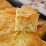 Verser le mélange précédent puis poser le restant de pâte dessus (les 4 feuilles de pâte filo restantes ou l'autre pâte feuilletée).