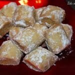 Après la cuisson, enrober les biscuits du mélange de sucre glace et sucre vanillé.