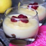 Verser la crème dans les verrines, sur le mélange de framboises et spéculoos.