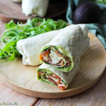 Surmonter de quelques feuilles de roquette, de tranches de truite fumée (deux environ par wraps), du restant de ciboulette ciselée et enfin de copeaux de parmesan.